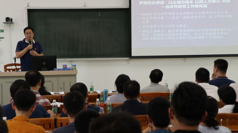 大会第二项议程,是由林伟鹏院长传达学校2019年春季工作会议精神。林院长详细解读了罗俊校长的主题报告和陈春声书记的总结报告的主要内容,要求全体师生党员认真学习领会大会精神,积极践行“三全育人”理念,聚焦人才培养质量,发挥党员的先锋模范作用,在各自的岗位上自觉担负责任、贡献力量。
