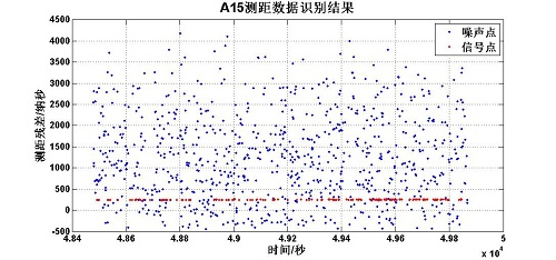 1.2m望远镜激光测距系统采取共光路工作方式,激光波长532nm,脉冲宽度为10ns,频率10Hz,试验时单脉冲脉冲能量为3.3J。地月平均距离为384403.9km,2018年1月22日晚21:25~22:31,实测数据段显示Apollo15反射器到测站的距离为385823.433km~387119.600km,测距精度优于1m。