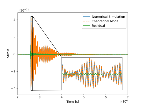 中心胡一鸣教授团队和张雪峰教授团队共同合作,提出了从天琴观测数据中提取地球自由振荡信号的数据处理方法。研究团队依照第一性原理,首次推导出了地球自由振荡在天琴探测器时间延迟干涉通道中响应信号的解析公式。通过与数值模拟方法生成的信号进行对比,该研究检验了解析公式的有效性(如图1所示)。在此基础上,研究团队使用解析响应波形,利用匹配滤波方法从模拟数据中提取信号并进行参数估计。研究结果表明,对于由类汶川地震(7.9级)所激发的地球自由振荡,天琴探测器能分辨其中约9个不同的模式(如图2所示)。这项结果表明,天琴可以开启一个新的窗口进行地球自由振荡的探测,该窗口可以在不依赖地面引力测量的情况下,独立地进行地球内部结构和地震的研究。