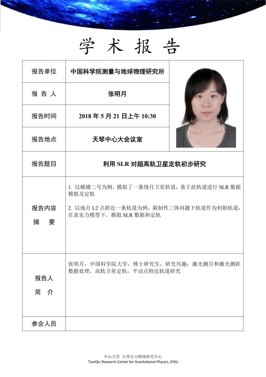 [5月21日学术报告]张明月-利用 SLR 对超高轨卫星定轨初步研究