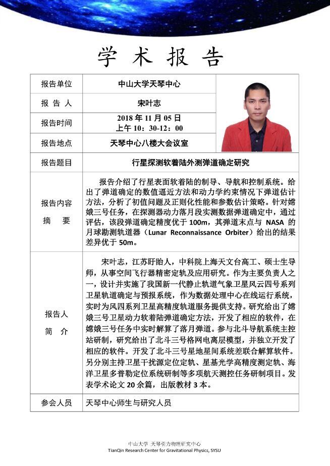 [11月5日学术报告]宋叶志-行星探测软着陆外测弹道确定研究