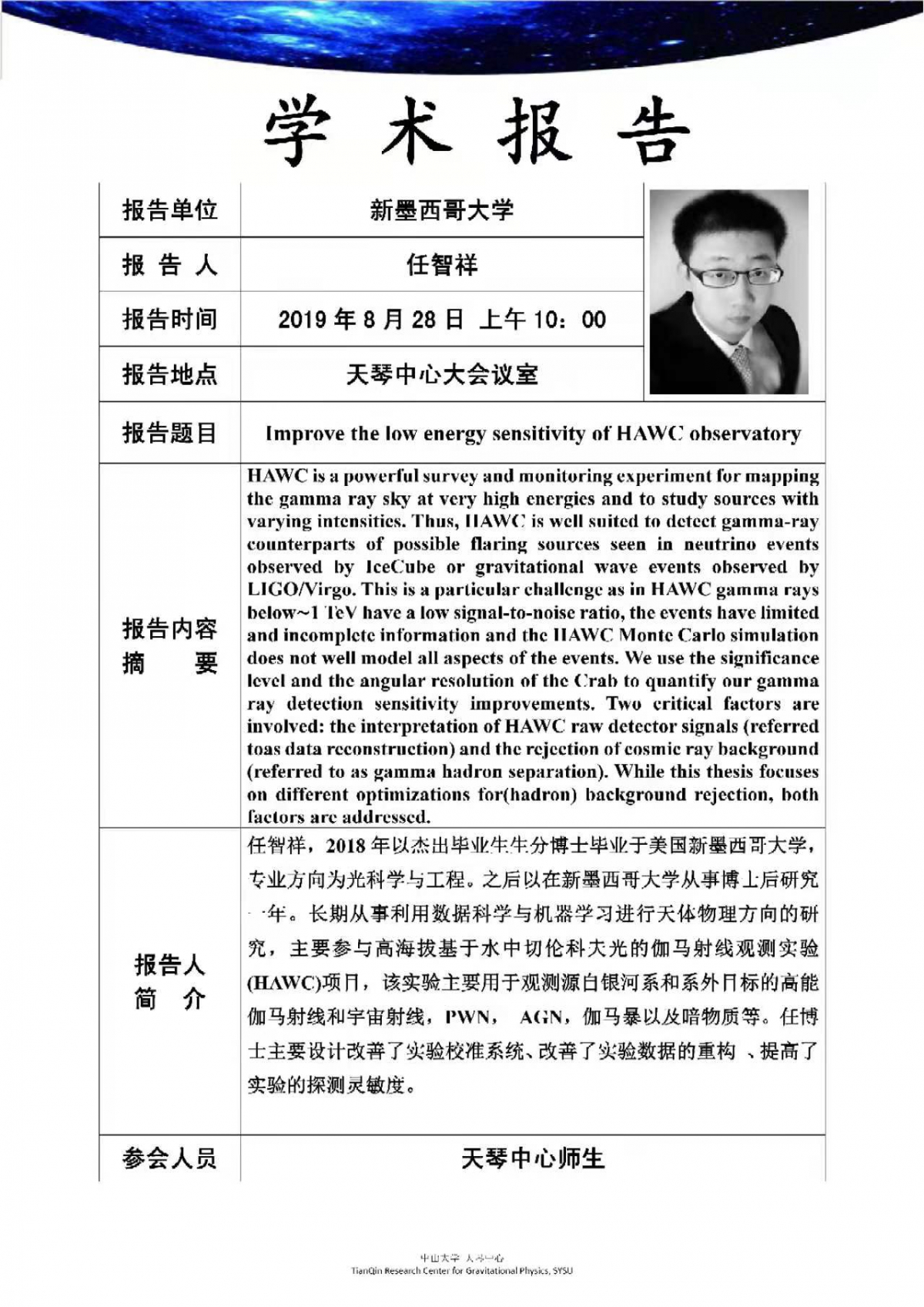 [8月28日学术报告]任智祥-Improve the low energy sensitivity of HAWC observatory