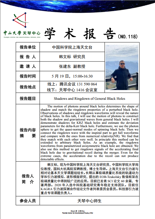 [5月19日学术报告]韩文标-Shadows and Ringdown of General Black Holes