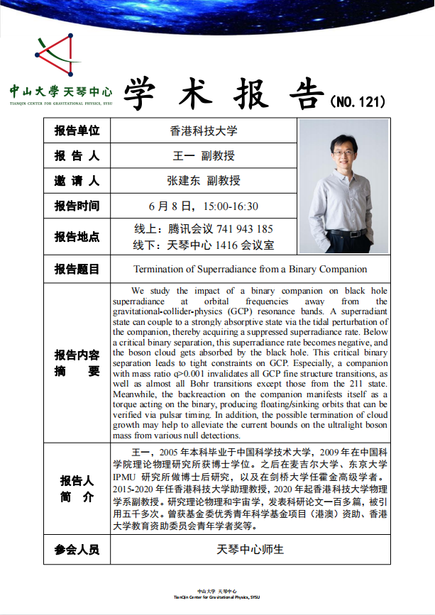 [6月8日学术报告]王一-Termination of Superradiance from a Binary Companion