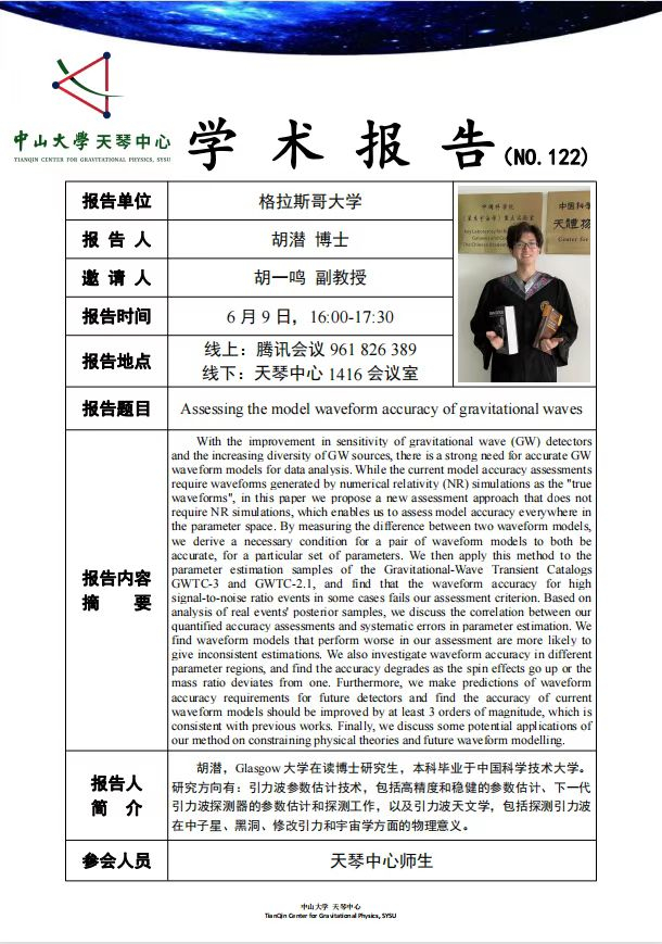[6月9日学术报告]胡潜-Assessing the model waveform accuracy of gravitational waves