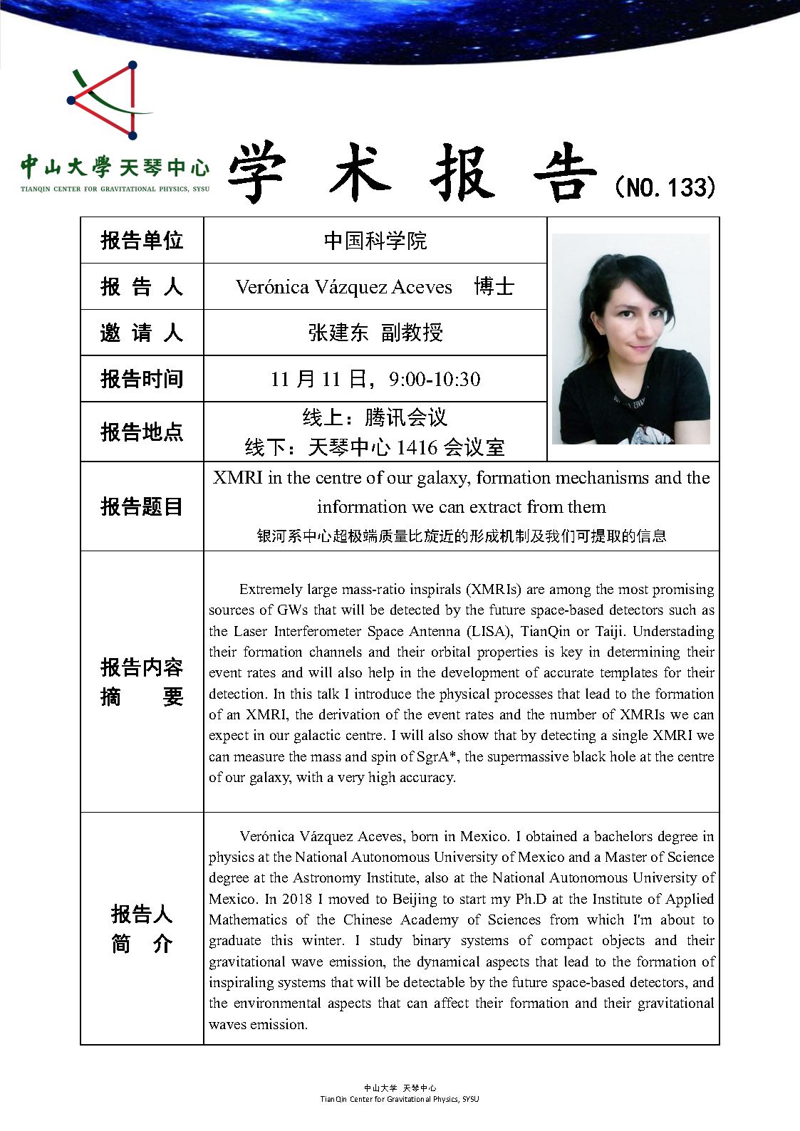 [11月11日学术报告]Verónica Vázquez Aceves-XMRI in the centre of our galaxy, formation mechanisms and the information we can extract from them