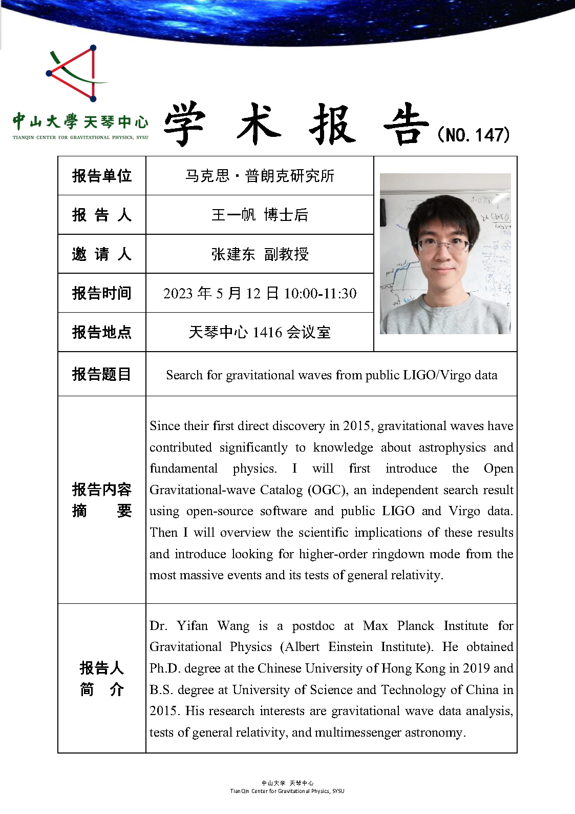 [5月12日学术报告]王一帆-Search for gravitational waves from public LIGO/Virgo data