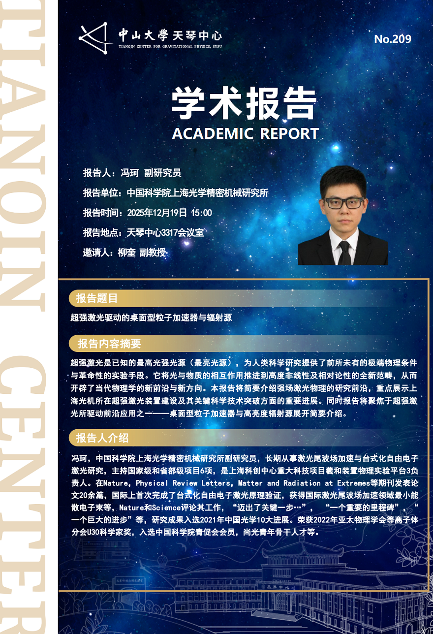 [12月19日学术报告]冯珂-超强激光驱动的桌面型粒子加速器与辐射源