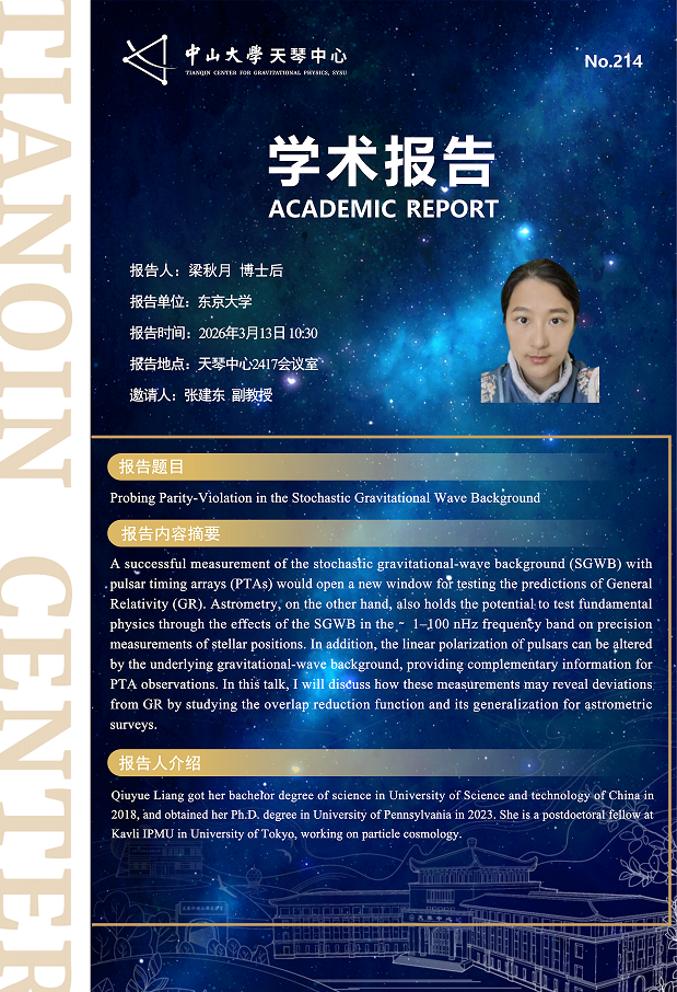 [3月13日学术报告]梁秋月-Probing Parity-Violation in the Stochastic Gravitational Wave Background